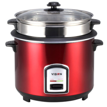 Vision RC-1.8L REL-40-06 SS Red Double Pot provides 700W of power which is enough to cook rice in 15-20 minutes. It has a full SS body and features a 1.2mm genuine non-stick coating inner pot, antibacterial action in warm mode, a stainless steel steamer with a plastic handle, magnetic switch and thermostat, and a 2-hole 6-6.5mm plastic handle glass. lid. This RC- 1.8 L REL-40-06 SS Red Double Pot Rice Cooker ensures long-lasting use.